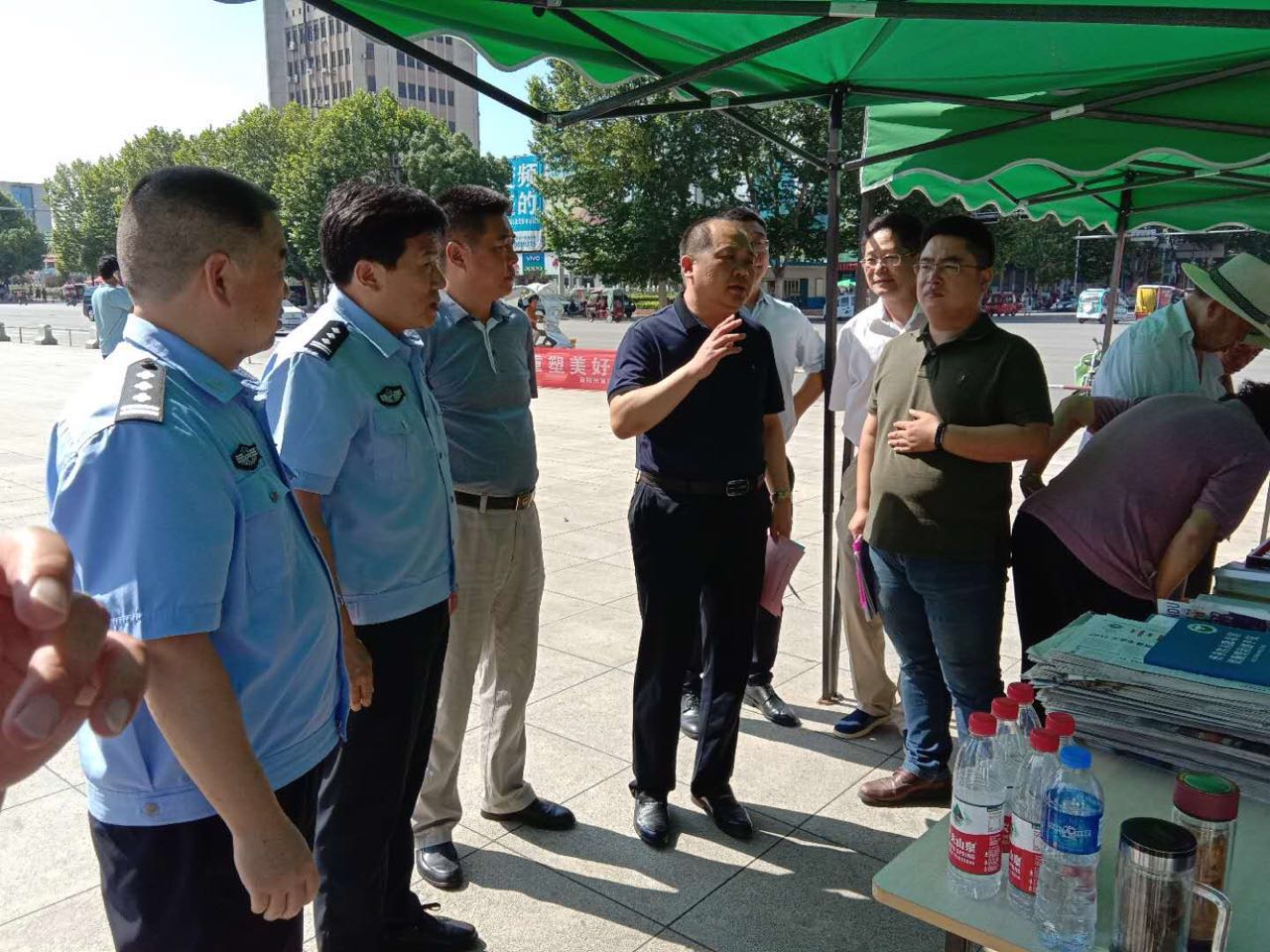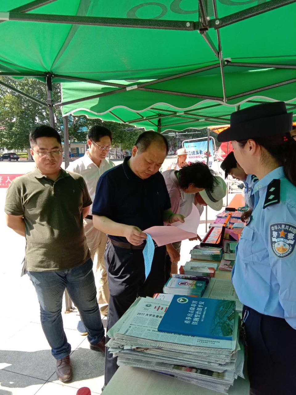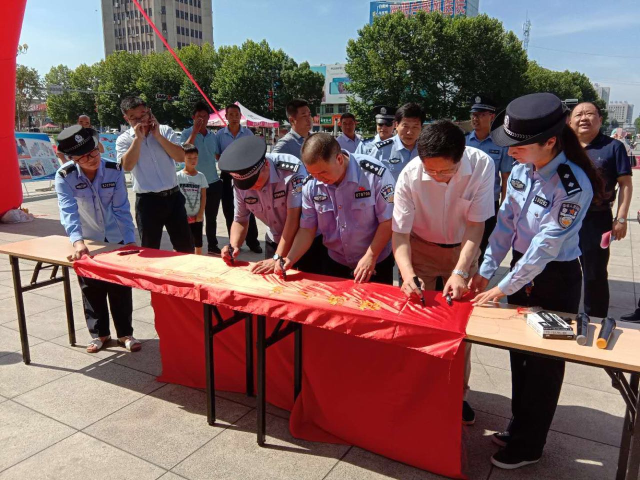 宣传活动现场,党建凯向工区禁毒部门同志们仔细询问了禁毒工作中存在的问题,要求大家切实增强禁毒宣传实效,掀起自觉防毒、拒毒的新高潮,积极创建禁毒示范区,竭力把官庄工区打造成生态、宜居、富裕、和谐的新工区,并对在酷暑下参加活动的成员单位表示慰问。党建凯一行还参观了展出的禁毒宣传展板,并带领大家在“健康人生、绿色无毒”的长卷上郑重签上自己的名字。
